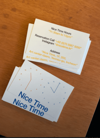 나이스 타임이라는 상호에 매칭하여 영업시간을 표현하였네요.